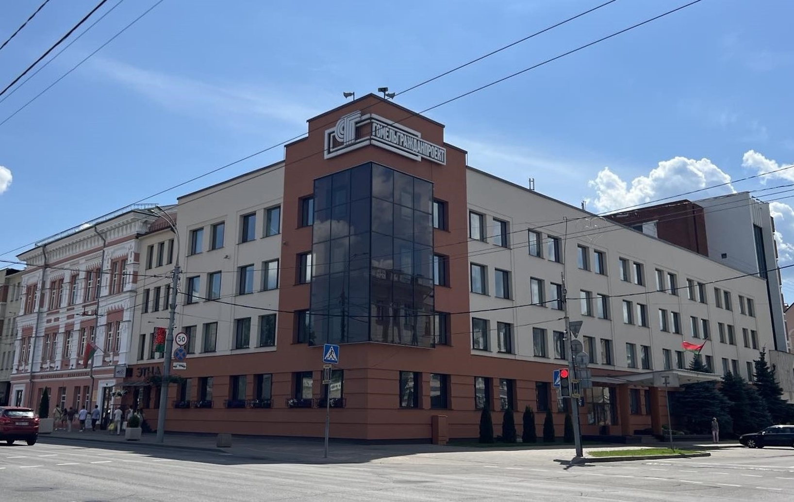 Gomelgrazhdanproekt fasadining hozirgi ta'miri 2024-yilda amalga oshirilgan.